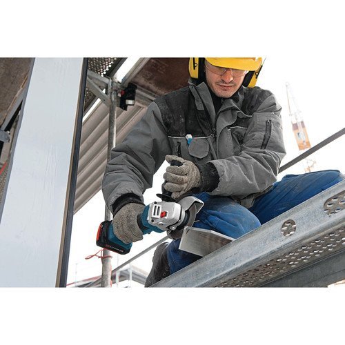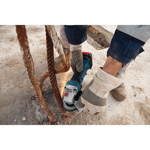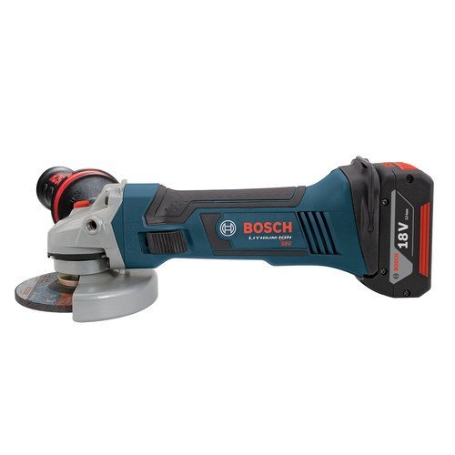 Overload protection and lifetime brush design. The Bosch GWS18V-45 18-Volt 4-1/2-Inch Angle Grinder is an ideal portable cordless grinder for electricians, plumbers and others who need professional power. With its four-brush motor design and optimized gear structure, it provides a 0-10,000 no-load rpm, to handle cutting and grinding applications. It features a two-position Vibration Control side handle for better handling and less operator fatigue. It is designed for long tool life, with Bosch's Electronic Cell Protection and Electronic Motor Protection, optimized brush design. For user protection, this cordless grinder was engineered with a tool-less quick-change, burst-resistant wheel guard and restart protection to avoid accidental startup.