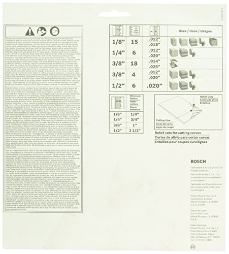 From the Manufacturer Bosch brand band saw blades are made from premium grade steel that resists heat buildup which provides long life for the blade. The unique tooth geometry is optimized for the best performance during cutting. A variety of sizes and types are offered to cover wood and metal applications. Bosch band saw blades are designed to fit most popular brand band saws, including 9-Inch and 10-Inch band saws.