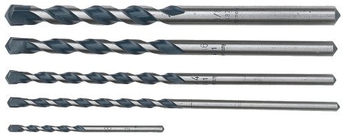 5 Piece, Blue Granite, Hammer Drill Bit Set, Includes: 1/8", 3/16", 1/4", 5/16" & 3/8", Used For Fast Impact Drilling In Concrete, Stone & Masonry, Up To 60% Longer Life & 30% Faster Drilling Than Masonry Bits.