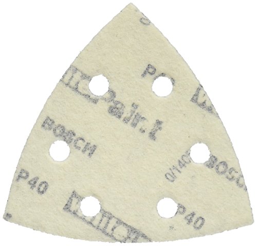 Detail Triangle Hook & Loop Sanding Sheet with 40 Grit (Pack of 25) Bosch parts keep your tools working their best for any application you can come up with. Bosch sanders are commonly in need for new pads to do the job right. Features: 40 Grit Bosch has been in the headlines of state of the art development for over 100 years. From the invention of the jigsaw to their ergonomic designed tools, Bosch as cared about the customer since they started business in 1886.