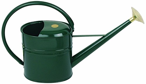 Original Haws watering cans designed by John Haws in 1886; Made in England. Haws watering cans have been a fixture in English gardens since 1886, the year that Londoner John Haws patented his unique design for a “watering pot” with perfect balance. The European market has always favored oval shape watering cans with a single handle running front to back. Haws now offers this style of watering can as an alternative to the traditional British two handled can. This metal oval-shaped can with a single handle is a recent departure from the traditional Haws styling, however the manufacturing method used is still very much in the Haws tradition. Heavy gauge steel is hot-dipped in zinc for rust resistance. The can and handle are extremely well-balanced and allow for single-handed watering if desired. An oval removable brass spray rose is supplied. Over the last 125 years the Haws name has become known as the makers of the finest watering cans used throughout the world. Gardeners know that a Haws watering can is the best whether it's made in metal or plastic. 2-gallon (8-liter) capacity, green in color. Made in England.