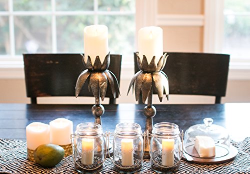 The beauty of a real candle without the worry and risk of an open flame, hot wax, smoke, or soot;Perfectly replicates the random flicker with a moving flame and ambient glow- nearly indistinguishable from a traditional burning candle;Made from durable plastic;5 hour timer function;Offers 150 hours of useable light glow time on 2 AA batteries (not included)