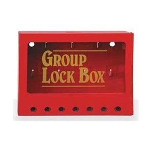Group Lockout Box, Max. Number of Padlocks 7, Sliding Lexan Door Type, Red, Steel, Height 7 In., Width 8 In., Depth 2-1/4 In., Wall Mounting Yes, Number of Key Hooks 7, Legend Group Lock Box, Includes Key Pegs and ID Labels, Standards OSHA 1910.147 Padlock Lock Boxes, Stations, and CabinetsSteel Lock BoxesBrady models are tamper-resistant. Master Lock models are wall-mountable with a stainless steel handle. Lockout message on box is in English, Spanish, and French. Prinzing boxes have clear acrylic window, a detachable handle, and are wall-mountable. All boxes feature a powder-coat finish.
