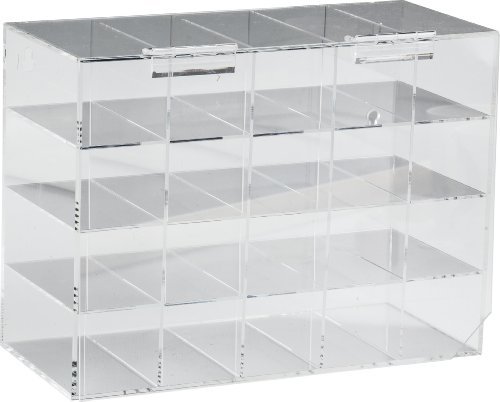 - Price For: Each Material: Acrylic Wall Mounting: Yes Holds: (20) Glasses Width: 15-1/2" Style: Case with Door Item: Safety Glasses Holder Height: 11-3/4" Depth: 6-13/16" Color: Clear Country of Origin (subject to change): Mexico