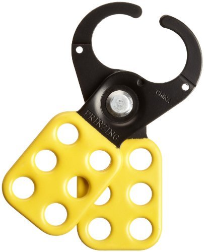 Brady T218 Yellow Lockout Hasps (1" Diameter Jaws). Epoxy-Coated 12 Gauge Steel Material, 1" Diameter Jaws, Yellow Color .