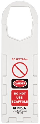 Material: Plastic. Brady 104111/SCAF-STH132 SCAFFTAG white holders are internationally used and recognized as the safety system to assist with the control of scaffolding from first build to dismantle. Plastic material, measures 11-3/4" height by 3-1/2" width. Legend "DANGER DO NOT USE SCAFFOLD."