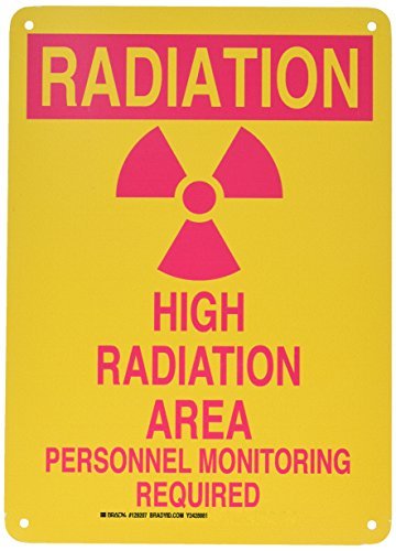 Brady 129207 Radiation and Laser Sign, Legend "Radiation High Radiation Area Personnel Monitoring Required", 14" Height, 10" Width, Magenta on Yellow [並行輸入品]