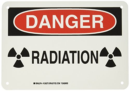 Brady radiation signs can help you comply with OSHA's regulations for radiation safety and laser warnings. These radiation signs offer messages for radiation danger, microwave warning signs and other radioactive warning safety signs. Radiation signs can be placed around your facility where radiation and x-ray safety are concerns. Header: DANGER. Legend: Radiation.