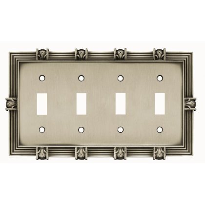 Brainerd 64461 Pineapple Quad Toggle Switch Wall Plate / Switch Plate / Cover, Brushed Satin Pewter [並行輸入品]