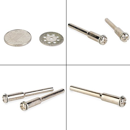 ミニルーター用、マンドレル付き(アーバー)。ダイヤのするどい切れ味と、美しい切断面が特徴です。あらゆる材質の切断・溝切り加工に適していますが、特に石・ガラス・貝殻等の非金属類に特に最適です。