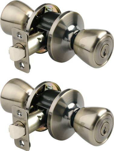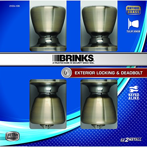 Brinks 2103-109 Tulip Style Keyed Entry Door Knob, Antique Brass, 2-Pack by BRINKS