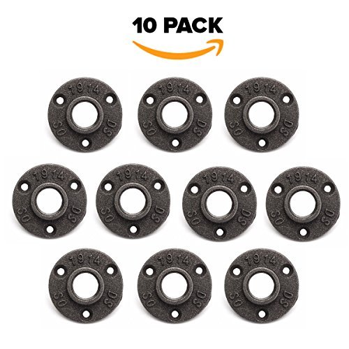 10パック1 / 2 "床フランジパイプDecor鋳鉄ブラックパイプねじパイプ継手工業スチームパンクヴィンテージレトロ装飾家具DIY壁床工業配管by Brooklynパイプ