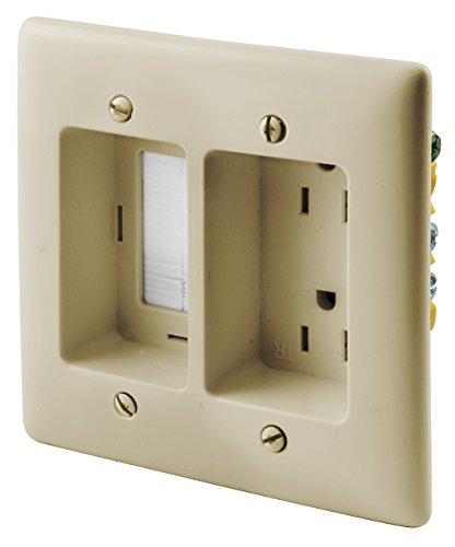 Bryant Electric RR1512I 2-Gang Recessed TV Connection Outlet Plate with 15 Amp 125V Tamper-Resistant Duplex Receptacle with One Pass-Thru Opening, Ivory [並行輸入品]