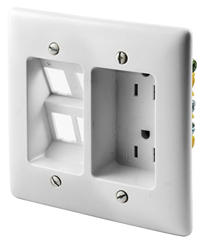 Bryant Electric RR1514W 2-Gang Recessed TV Connection Outlet Plate with 15 Amp 125V Tamper-Resistant Duplex Receptacle and One 4-Port Data Jack Opening, White [並行輸入品]