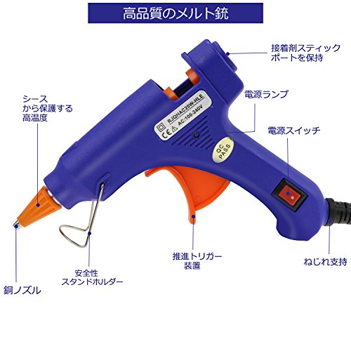 - ★プッシュタイプのデザインを採用し、小型高温タイプのグルーガンは、トリガ式押出装置で接着剤の出る量の調節ができますが、グルースティックもかなり節約できる。木材、紙、布、皮革、プラスチック、陶器、金属等の接着、充填に適用します。