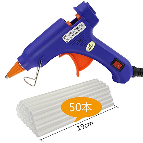 Buluri グルーガン 小型グルーガン 強力粘着 接着剤 プログルーガン 溶融グルースティック DIY 手芸用 高温タイプ プラスチック用 軽量 速乾 グルースティック 50本付き 19cm長さ