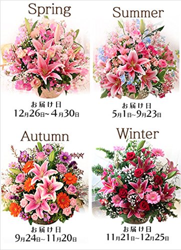- ※冬期は北海道・青森県・秋田県・岩手県への生花のお届けは商品の性質上、凍結の恐れがあるため出荷を見合わせております。恐れ入りますが対象地域へのお届けは、自動キャンセルとさせていただきます。ご了承ください。