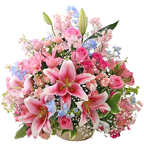 - オリエンタルリリー・バラ・季節の花&季節のグリーンたち、ラッピング付、バスケット入