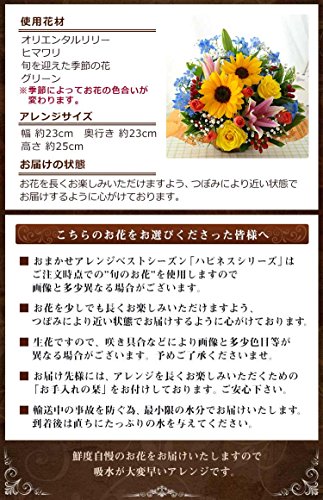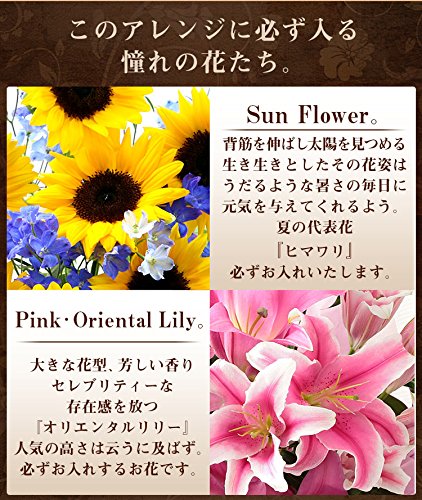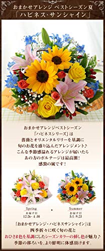 おまかせアレンジベストシーズン「ハピネスサマー」は、薔薇とオリエンタルリリーを基調に、旬のお花を盛り込んだボリューミーなアレンジメント♪ こんなに大きなアレンジが届いたら、あの方の感激度も満点に間違いなしです!