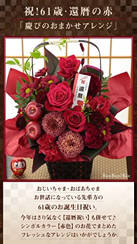 BunBunBee 賀寿のお祝いアレンジ【還暦 古希 喜寿 傘寿 米寿 卒寿 白寿】 (60歳 還暦・赤いアレンジ)