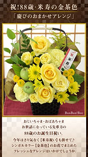 BunBunBee 賀寿のお祝いアレンジ【還暦 古希 喜寿 傘寿 米寿 卒寿 白寿】 (88歳 米寿・金茶色のアレンジ)