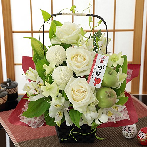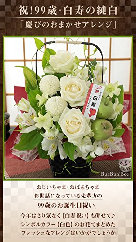 BunBunBee 賀寿のお祝いアレンジ【還暦 古希 喜寿 傘寿 米寿 卒寿 白寿】 (99歳 白寿・純白のアレンジ)
