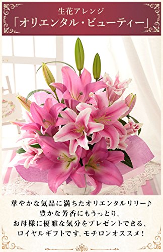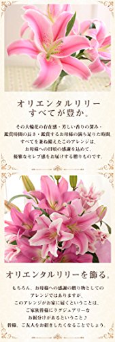 華やかな気品に満ちたオリエンタルリリー♪ 豊かな芳香にもうっとり。 お母様に優雅な気分をプレゼントできる、 ロイヤルギフトです。モチロンオススメ!