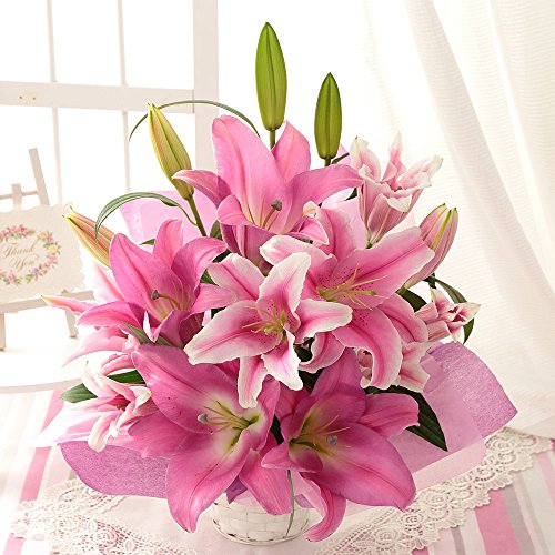 - 使用花材:オリエンタルリリー(ピンク&ライトピンク、2色12輪以上)。