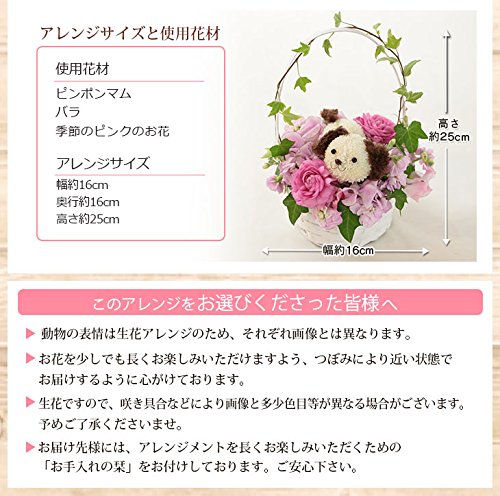 BunBunBee ペットフラワー♪季節のアレンジ「ワンコとピンク色の花」