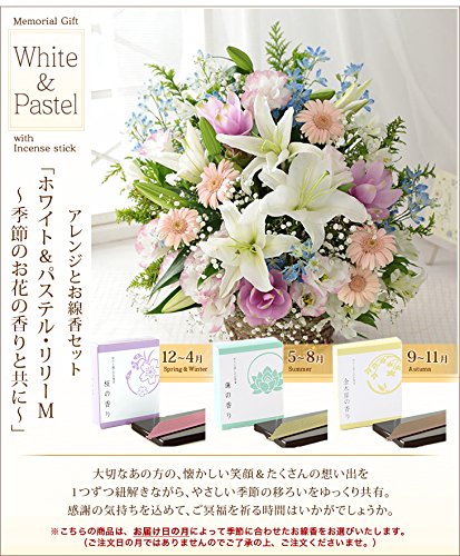 BunBunBee アレンジお線香付「ホワイト&パステル~リリーM 季節の香りと共に」