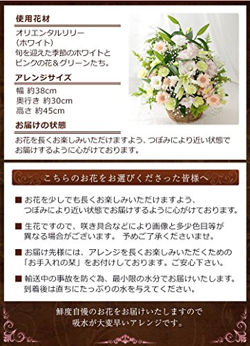 - オリエンタルリリー(ホワイト)・旬を迎えた季節のホワイトとピンクの花&グリーンたち。バスケット入。