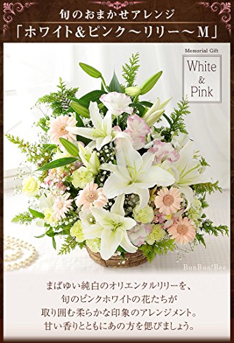 BunBunBee 旬のおまかせアレンジ「ホワイト&ピンク~リリー~M」