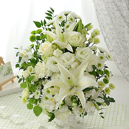 - オリエンタルリリー(ホワイト)・旬を迎えた季節のホワイトの花&グリーンたち。バスケット入。