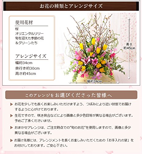 - こちらのアレンジメントは、桜・オリエンタルリリー・以外の花は毎日変わります。予めご了承くださいませ。