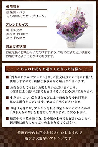 - 【アレンジメント】:胡蝶蘭・バラ・旬の紫の花たち・グリーン。