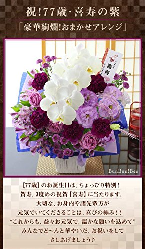 BunBunBee祝!77歳 喜寿の紫「豪華絢爛!おまかせアレンジ」【還暦 古希 喜寿 傘寿 米寿 卒寿 白寿】