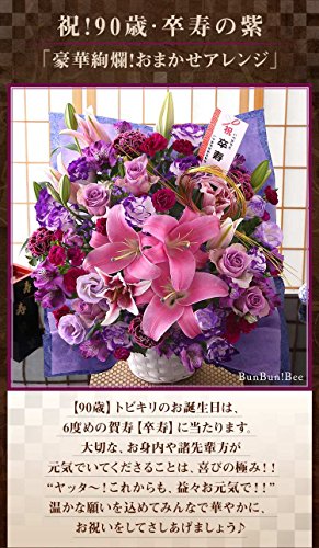 BunBunBee祝!90歳 卒寿の紫「豪華絢爛!おまかせアレンジ」【還暦 古希 喜寿 傘寿 米寿 卒寿 白寿】