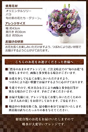 - 【アレンジメント】:オリエンタルリリー・バラ・旬の紫の花たち・グリーン。