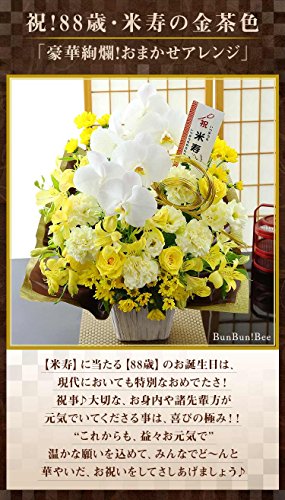 BunBunBee 祝!88歳 米寿の金茶色「豪華絢爛!おまかせアレンジ」【還暦 古希 喜寿 傘寿 米寿 卒寿 白寿】
