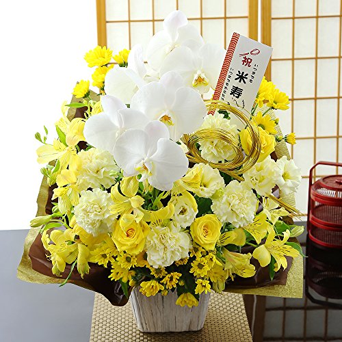 - 【アレンジメント】:胡蝶蘭・バラ・旬の黄色い花たち・グリーン。