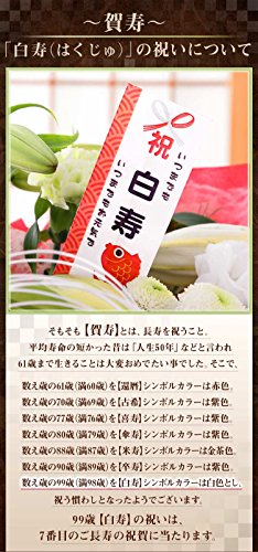 百歳目前の【99歳】のお誕生日は、7度めの賀寿【白寿】に当たります。大切な、お身内や諸先輩方が元気でいてくださることは、喜びの極み!!“ヤッタ~!これからも益々お元気で!!”温かな願いを込めてみんなで華やかに、お祝いをしてさしあげましょう♪