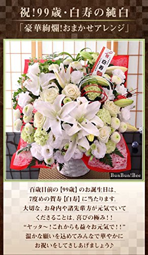 BunBunBee 祝!99歳 白寿の純白「豪華絢爛!おまかせアレンジ」【還暦 古希 喜寿 傘寿 米寿 卒寿 白寿】