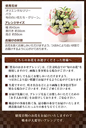 - 【アレンジメント】:オリエンタルリリー・バラ・旬の白い花たち・グリーン。