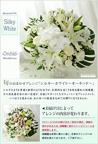 シルクのような質感と新雪のような白さが、圧倒的な美しさを誇る憧れの胡蝶蘭。その存在感を旬の白い花達が、力強くサポートしたボリューミーなアレンジメント。いつまでも変わらぬ、あの方への敬意を込めてお贈りになりませんか。