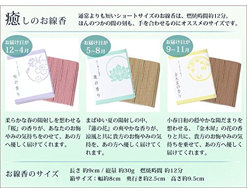- アレンジ:幅約43cm×奥行き約30cm×高さ約55cm。お線香:長さ約9cm。お線香:30g。燃焼時間:約12分。