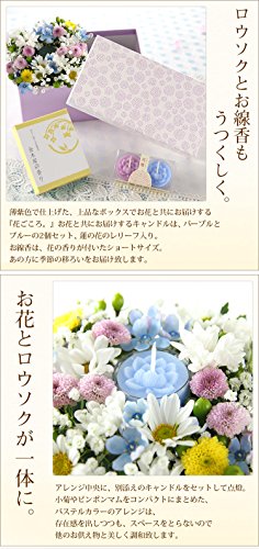 - ※生花ですので、その咲き具合などにより画像と多少色目等が異なる場合がございます。予めご了承くださいませ。 キャンドルの燃焼中は、そばを離れないようご注意ください。また、燃えやすいものの近くでのご使用はご遠慮ください。 キャンドルの燃焼中や消火直後は、触れたり移動させたりしないでください。