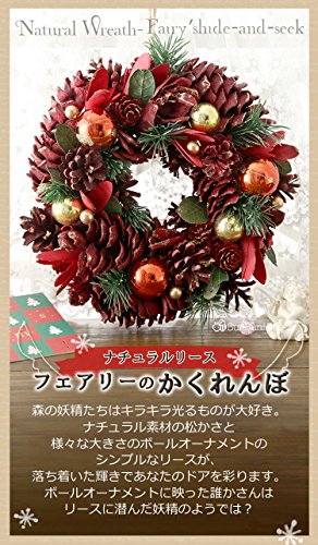 森の妖精たちはキラキラ光るものが大好き。ナチュラル素材の松かさと様々な大きさのボールオーナメントのシンプルなリースが、落ち着いた輝きであなたのドアを彩ります。ボールオーナメントに映った誰かさんはリースに潜んだ妖精のようでは?