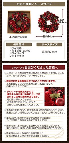 - ※このリースは木の実や樹皮などの天然素材を使用しているため、色や形がひとつずつ異なります。 ※乾燥させた葉や樹皮が欠けることがございますが、工業製品にはない天然素材の持つ風合いとしてお楽しみくださいませ。