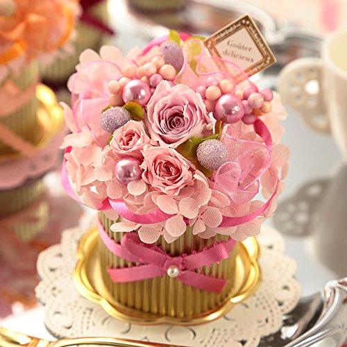BunBunBee プリザーブドフラワーケーキ「ピッコロ・ドルチェ」 クリアケース入り (ピンク)