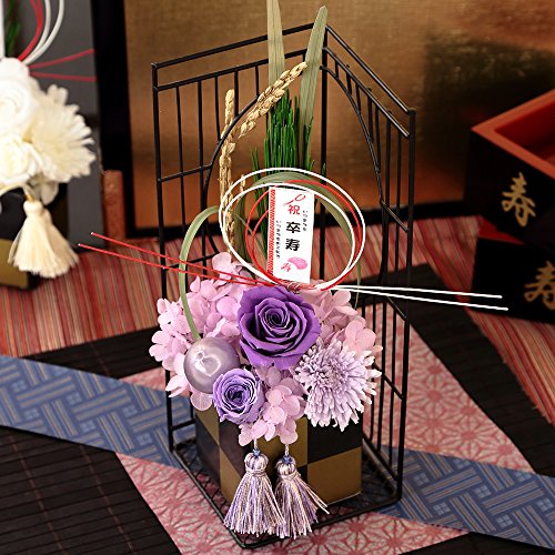 BunBunBee 賀寿のお祝いプリザーブドフラワー【還暦 古希 喜寿 傘寿 米寿 卒寿 白寿】 (賀寿90歳「卒寿のお祝い」(紫))